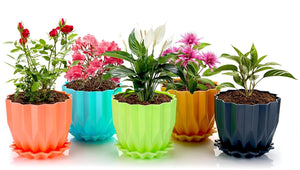 plastic flower pot set | decorative pots for plants | indoor plant pots with tray | crystal design planters | pastel flower pot set | flower pot with water tray | transparent plastic pots for plants | small pots for balcony garden | plant pot drainage set | buy flower pots online
