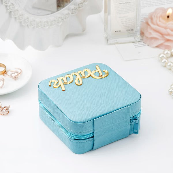 customised jewellery box | acrylic name jewellery box | blue mini jewellery organiser | portable jewellery box for travel | personalised jewellery box for girls | jewellery box with acrylic name | mini jewellery storage box | customised gift box for her | compact jewellery organiser | travel jewellery case for women