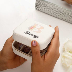 customised jewellery box | initial name jewellery box | portable jewellery organiser | mini travel jewellery box | personalised gift box | jewellery box for women | compact jewellery box | name initial jewellery organiser | travel friendly jewellery box | jewellery storage box India