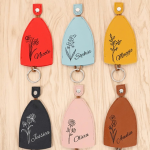 Add a stylish and personal touch to your keys with this Customized Name Leather Key Cover, beautifully designed with a floral pattern and your name. Made from premium leather material, this key protector keeps your keys safe from scratches while adding elegance to your everyday essentials.