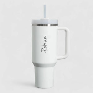 Introducing Strawvarie Cheer, your perfect companion for hot or cold drinks on-the-go! This 40oz stainless steel tumbler keeps your beverages at the right temperature for hours, thanks to its advanced insulation. With a 3-way lid and included straw, you can sip, gulp, or close it with ease. The sleek design fits most car cup holders, and the comfortable handle makes it easy to carry. Plus, it's dishwasher safe for hassle-free cleaning. Make a statement with your personalized tumbler, available in various colors. It's an ideal gift for yourself or a loved one, symbolizing thoughtfulness and care.
