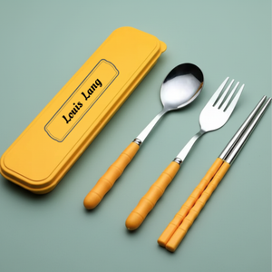 Customized Name Stainless Steel Tableware Set with Case β Reusable Cutlery Set