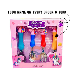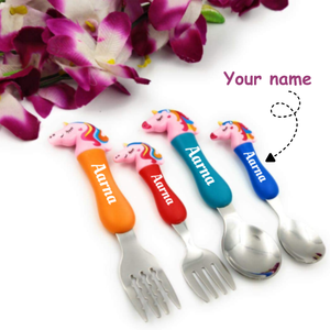 Customized Unicorn Stainless Steel Spoon & Fork Set for Kids – Custom Name Cutlery Set