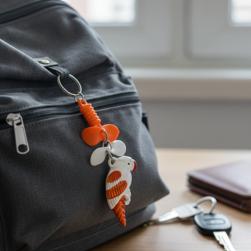 12 Pcs Cute Bird Keychain – White & Orange Bird Charm Key Ring for Keys, Bags & Gifts