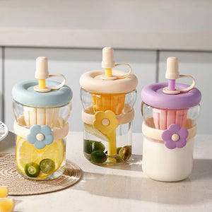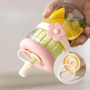 Eco-Friendly Reusable Coffee Glass Mug with Straw – Cute & Fancy Design (Random Color-Pack of 1)