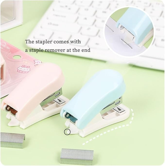 cute mini stapler | portable desk stapler | small stapler for school | mini stapler with staples | compact stapler | lightweight stapler | mini office stapler | adorable stapler | travel stapler | plastic mini stapler
