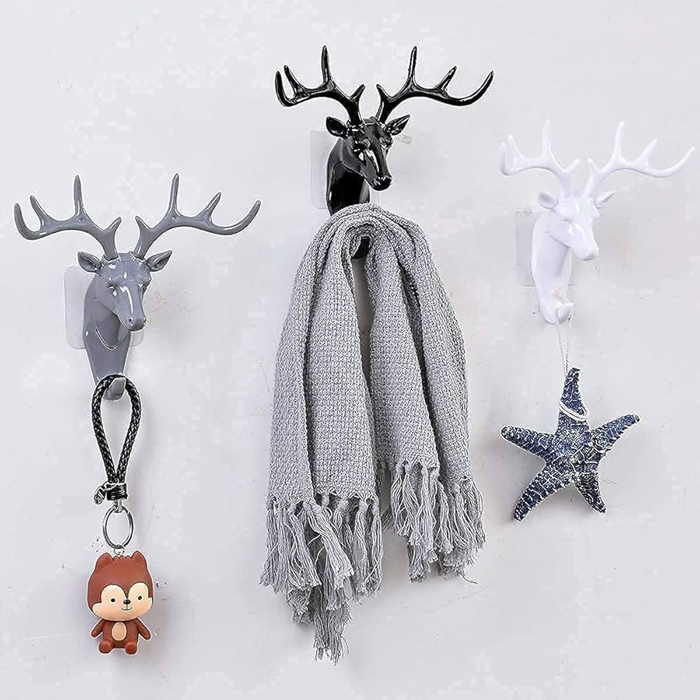 Deer Head Adhesive Wall Hook – Strong Self-Adhesive Decorative Wall Hanger for Keys, Towels, Bags & Clothes (Random Color) (Pack of 1)
