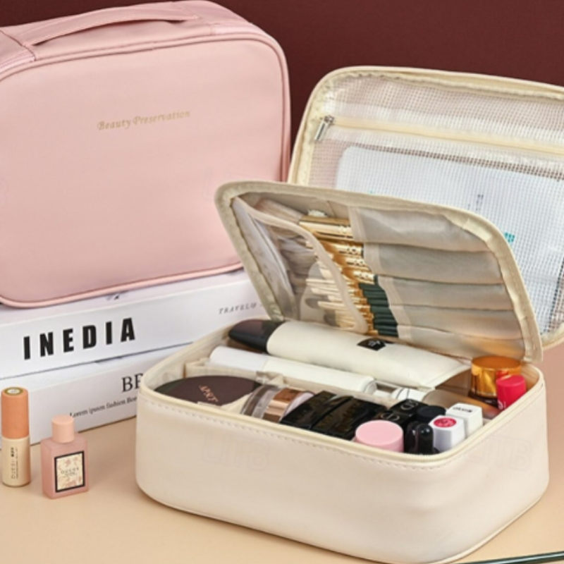 Ideal for carrying cosmetics, toiletries, skincare products, makeup tools, brushes, and travel essentials.