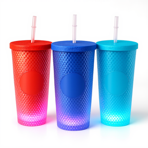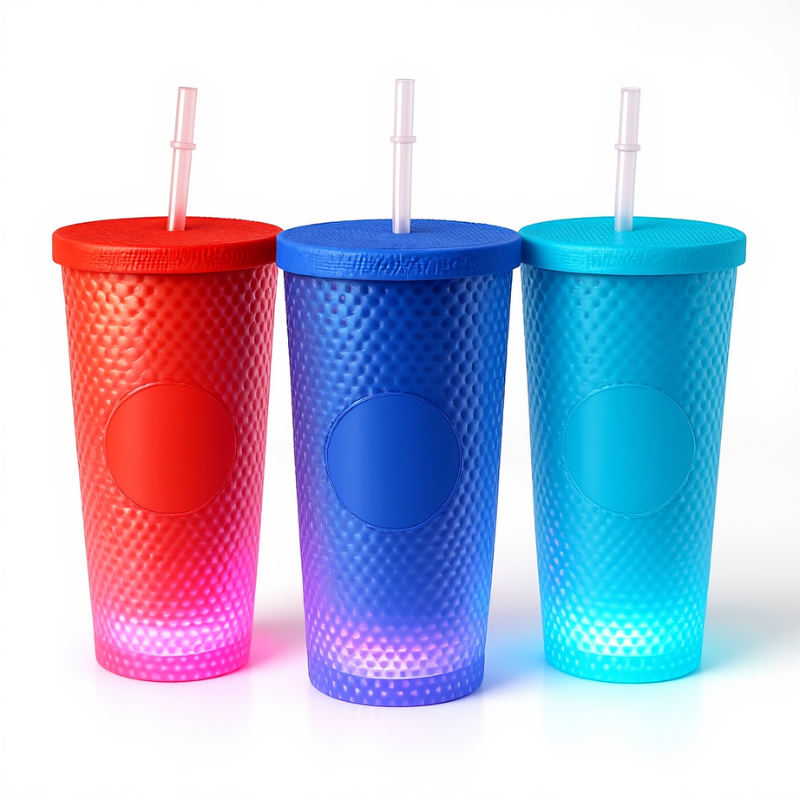 Diamond Cup Double-Layer Plastic Straw Cup with LED Light – 700 ml, Fun & Colorful Drinkware (Random Color- Pack of 1)