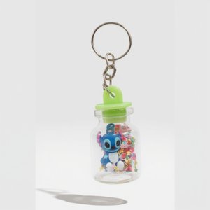 12 Pcs Disney Stitch Bottle Keychain – Cute Cartoon Stitch Figure Inside Mini Glass Bottle Key Ring