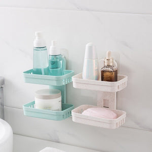 Double Layer Soap Dish Tray With Sticker (Random Color)