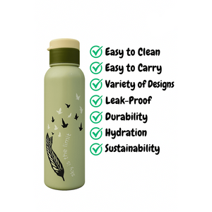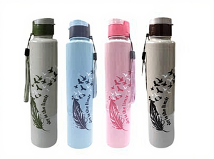 Elegant Feather and Birds Design Water Bottle – Durable, Reusable, and Eco-Friendly (Random color) ( Pack of 1 )