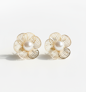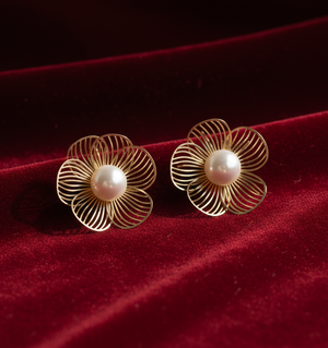 Elegant Gold Flower Pearl Stud Earrings for Women – Chic Daily & Party Wear Jewelry( 1 Pair)