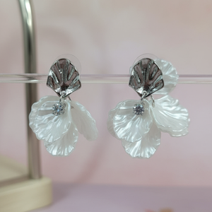 Elegant White Resin Petal Dangle Earrings - Bridal Flower Drop Statement Jewelry (1 Pair)