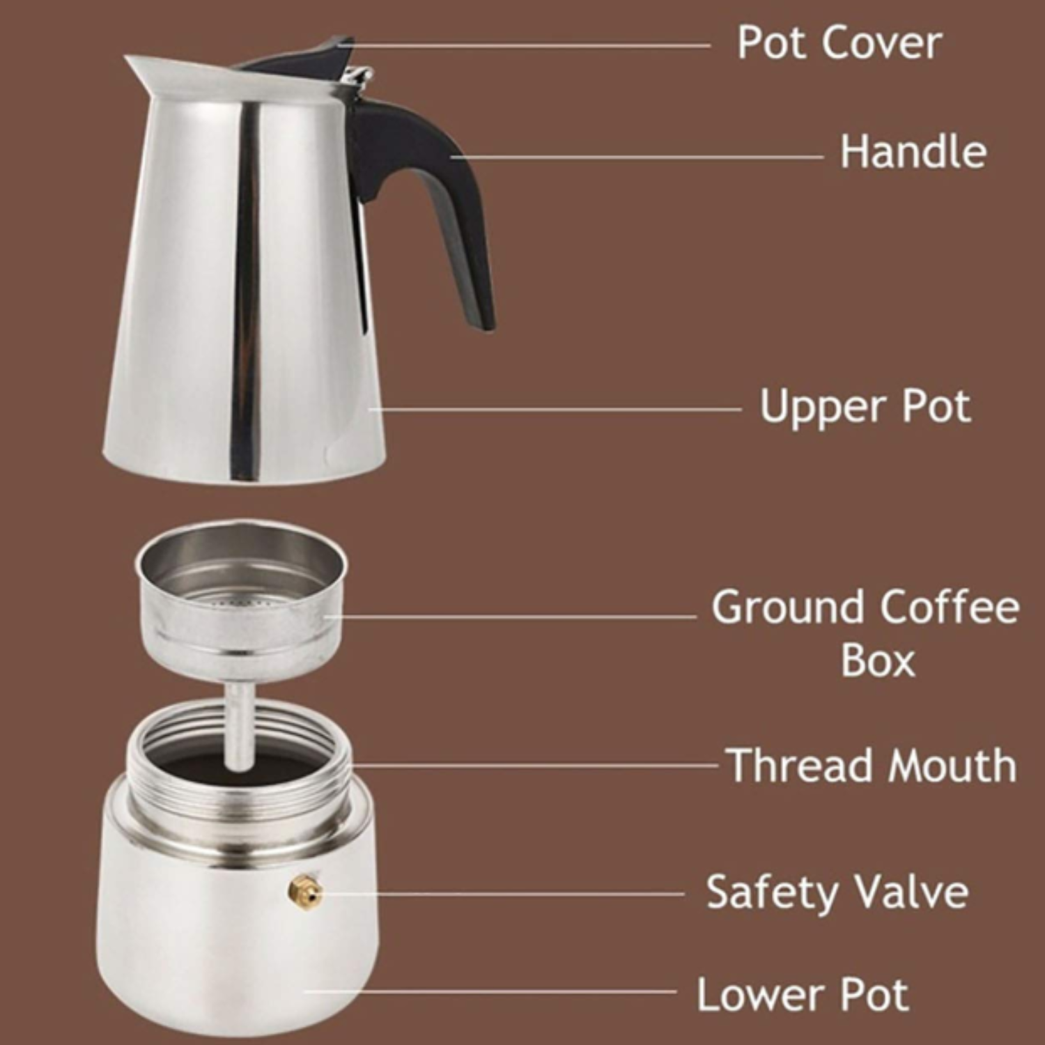 200ml Stainless Steel Moka Pot – Classic Italian Style 4-Cup Espresso Maker