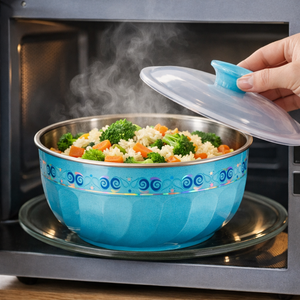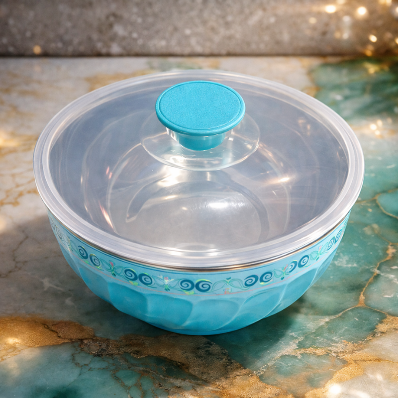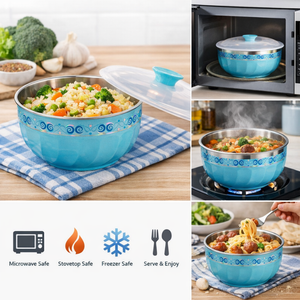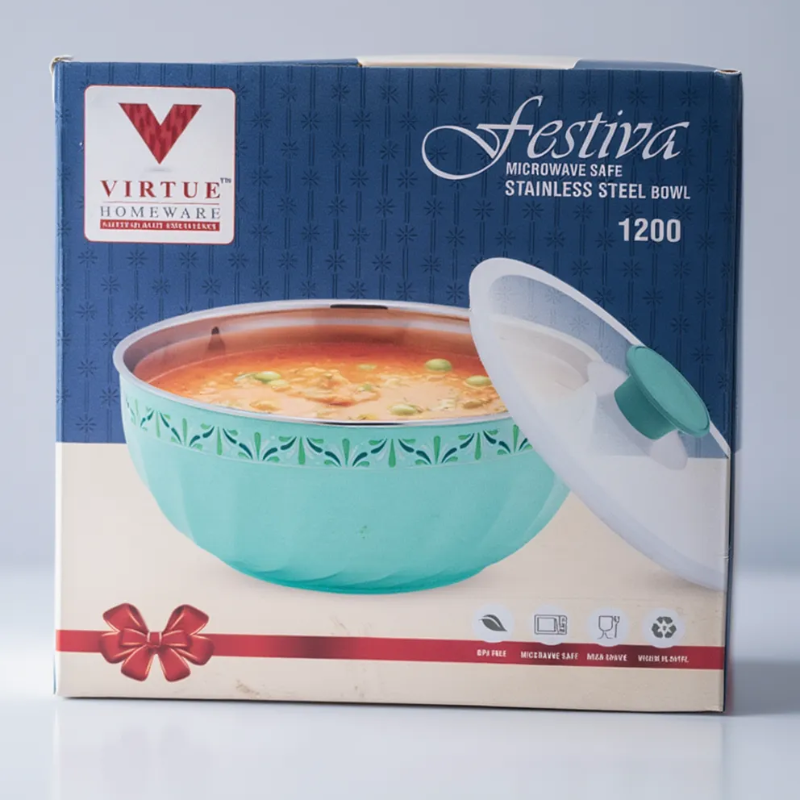 Festiva 1200ml Stainless Steel Bowl with Lid – Microwave-Safe Food Storage & Serving Bowl (Random Color-Pack of 1)