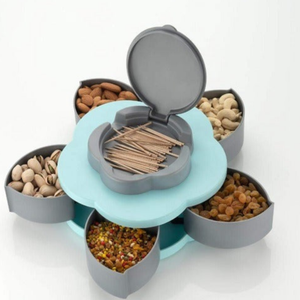5-Compartments Flower Candy Box Rotating Tray – Dry Fruit, Snacks & Chocolate Storage with Mobile Stand for Kitchen & Office Desk (Random color- Pack of 1)