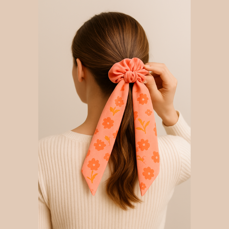 Floral Satin Hair Scrunchie – Premium Quality, Gentle on Hair (Random Color-Pack of 1)
