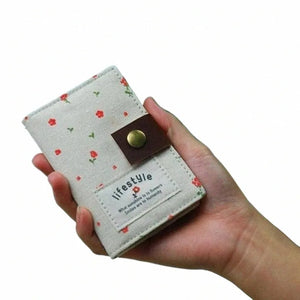 Floral Print Canvas Card Holder – 20 Card Capacity Wallet for ID, Debit, Credit & Visiting Cards (Random color-Pack of 1)