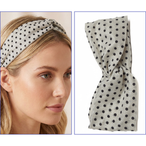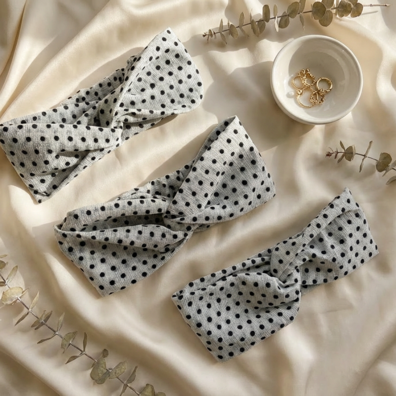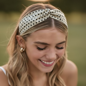 Polka Dot Twist Knot Women’s Hair Band – Stylish Non-Slip White Headband with Black Dots (Pack of 1)