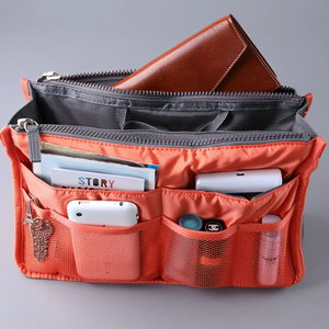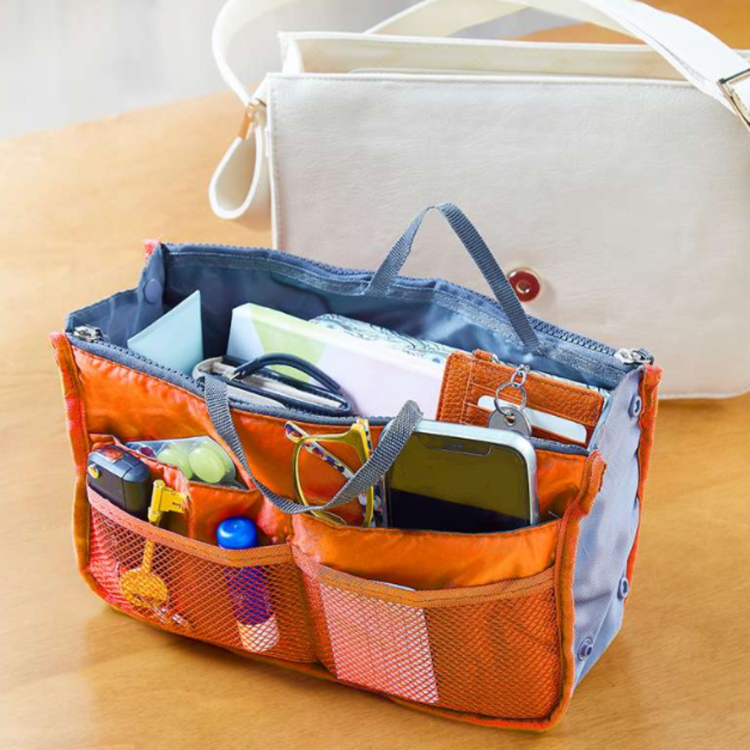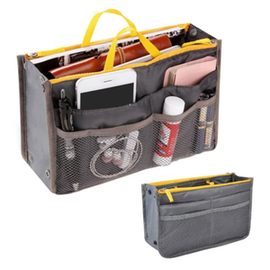 Folding Toiletry Bag – Women’s Handbag Organizer Insert with 13 Pockets, Large Capacity, Zipper Closure & Handle (Portable Travel Organizer)