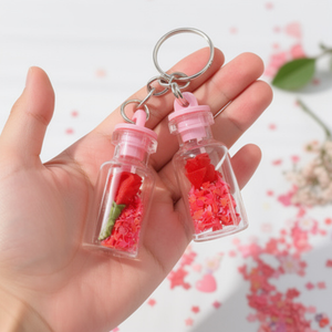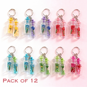 12 Pcs Glass Bottle Keychains with Rose & Glitter – Decorative Mini Bottle Keyring (Random Color)