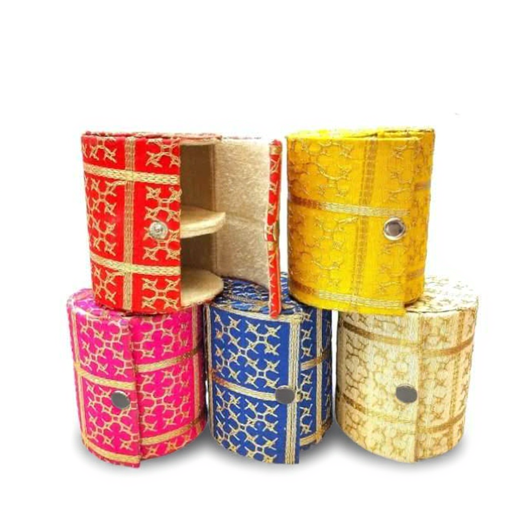 Gold Embroidery Bangle Storage Roll – Compact Jewellery Organizer for Bangles & Bracelets (Random Color-Pack of 1)