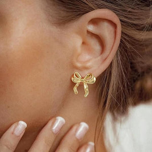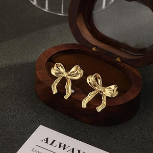 Gold Plated Bow Stud Earrings – Dainty Ribbon Earrings for Women, Hypoallergenic & Elegant Jewelry Gift(1 Pair)