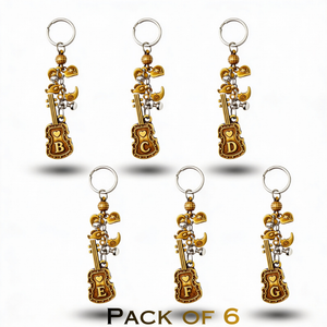 6 Pcs Guitar-Shaped Alphabet Initial Keychain with Cute Charms – Letter Key Ring (Random Alphabet Initial)