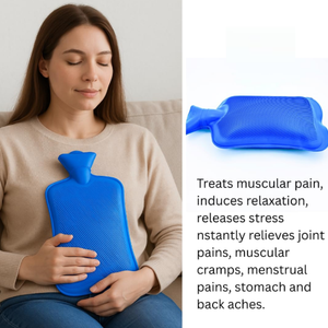 This non-electric hot water bag provides effective pain relief from period cramps, body aches, muscle stiffness, joint pain, and cold discomfort. Designed for both hot and cold therapy, it helps relax muscles, improve blood circulation, and reduce swelling. Made from durable, leak-resistant rubber, it retains temperature for longer and ensures safe everyday use. Lightweight, reusable, and easy to use, it’s perfect for home care, winter warmth, and natural pain relief without electricity.