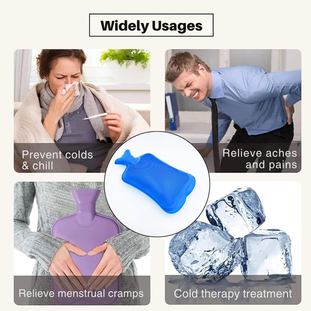 Hot Water Bag – Non-Electric Rubber Heating Bottle for Pain Relief, Period Cramps & Body Aches (Random color-Pack of 1)