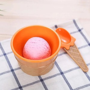 Ice Cream Bowl With Spoon – Durable Plastic Dessert Serving Bowls (Random color-Pack of 2)