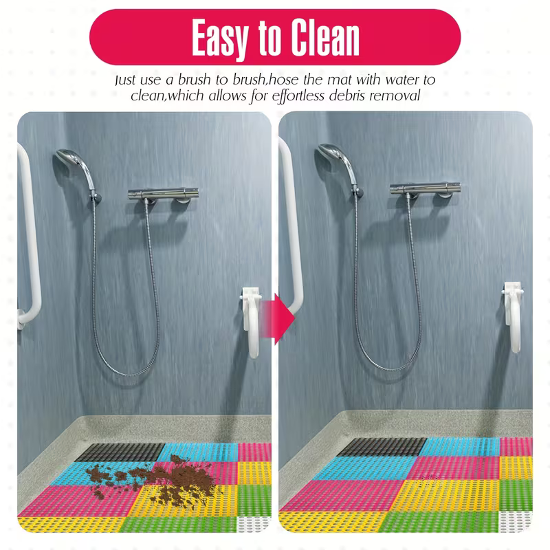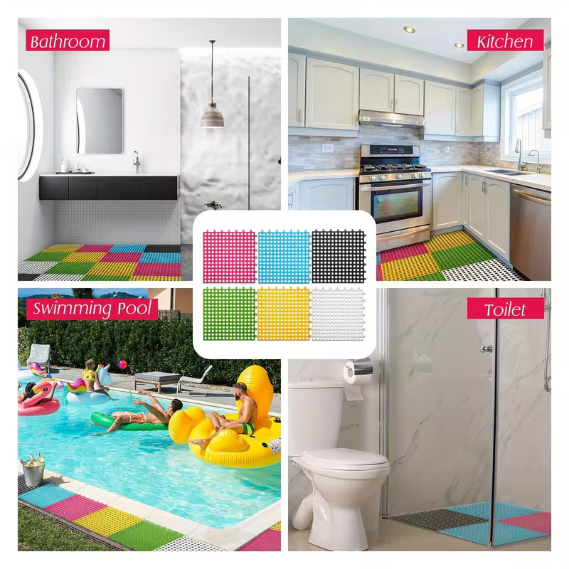 Interlocking Floor Tiles – Soft PVC Non-Slip Drainage Floor Mat for Bathroom, Pool, Patio & Balcony (Random color-Pack of 4)