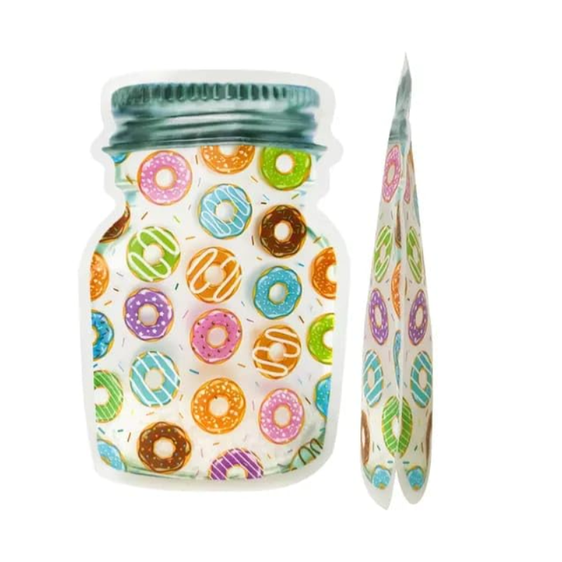 Jar-Shaped Ziplock Food Storage Bags – Airtight BPA-Free Snack & Dry Food Pouches with Donut Print (1 Big +1 Small Jar-Set of 2 PCs)