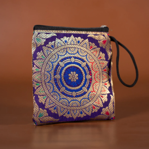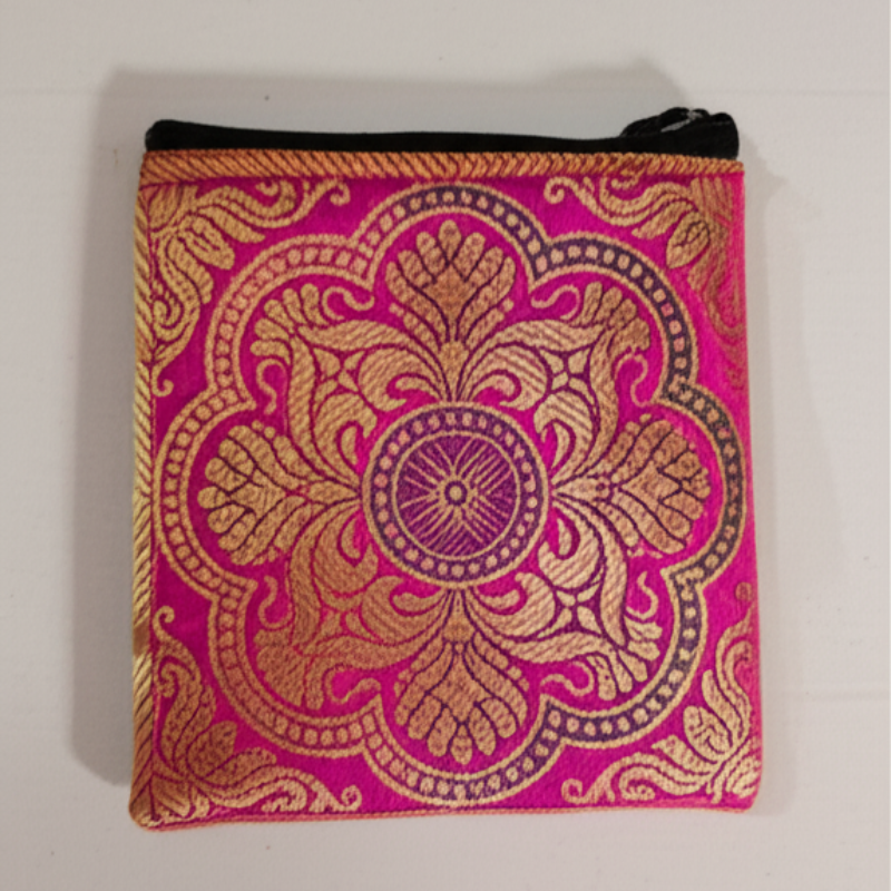 Kolam Designed Banarasi Coin Pouch – Elegant Ethnic Mini Purse for Women (Random Color-Pack of 1)
