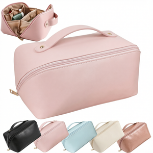 Large Capacity Travel Cosmetic Bag – Waterproof Leather Makeup Organizer with Multiple Compartments (Pack of 1)