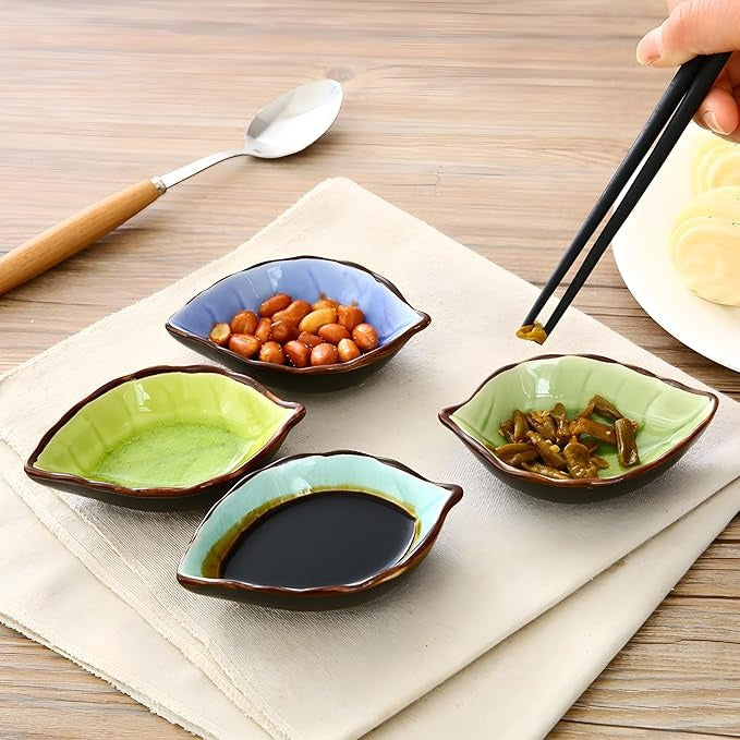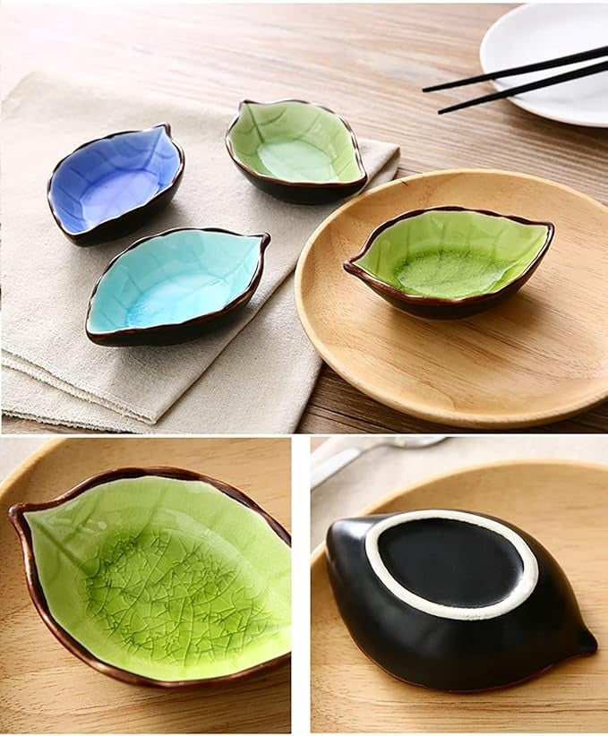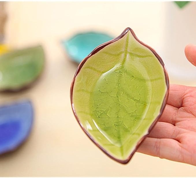 Leaf-Shaped Ceramic Plate – Elegant Nature-Inspired Green Dish for Serving Snacks, Sauces, and Home Décor (1 Pcs)