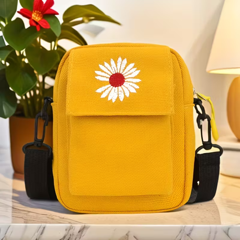 Little Daisy Sling Canvas Bag for Women & Girls – Floral Crossbody Shoulder Bag with Zipper (Random Color-Pack of 1)
