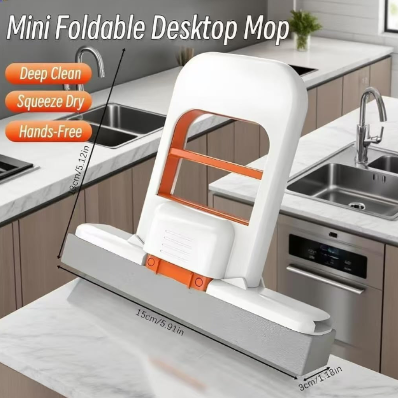 Portable Desktop Sponge Mop – Mini Self‑Squeeze Mop for Wet and Dry Use