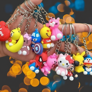 Mini Random Cartoon Keychain Combo – Soft Silicone Characters for Bags, Keys & Gifting (Pack Of 12)