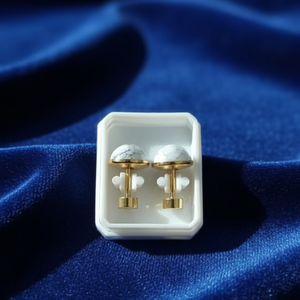 Minimalist Grey Stone Stud Earrings - Gold Plated Tiny Dome Ear Piercings - Everyday Hypoallergenic Jewelry (1 Pair)