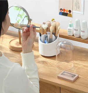 Product Description: Organize your cosmetics and accessories effortlessly with our Multifunction 360° Rotating Desktop Storage Box. Designed for convenience and style, this rotating organizer is perfect for bedrooms, parlors, and home offices. Ideal for girls and housewives, it keeps makeup brushes, small cream pouches, and makeup sponges tidy and accessible. Enhance your vanity or workspace with this versatile storage solution.