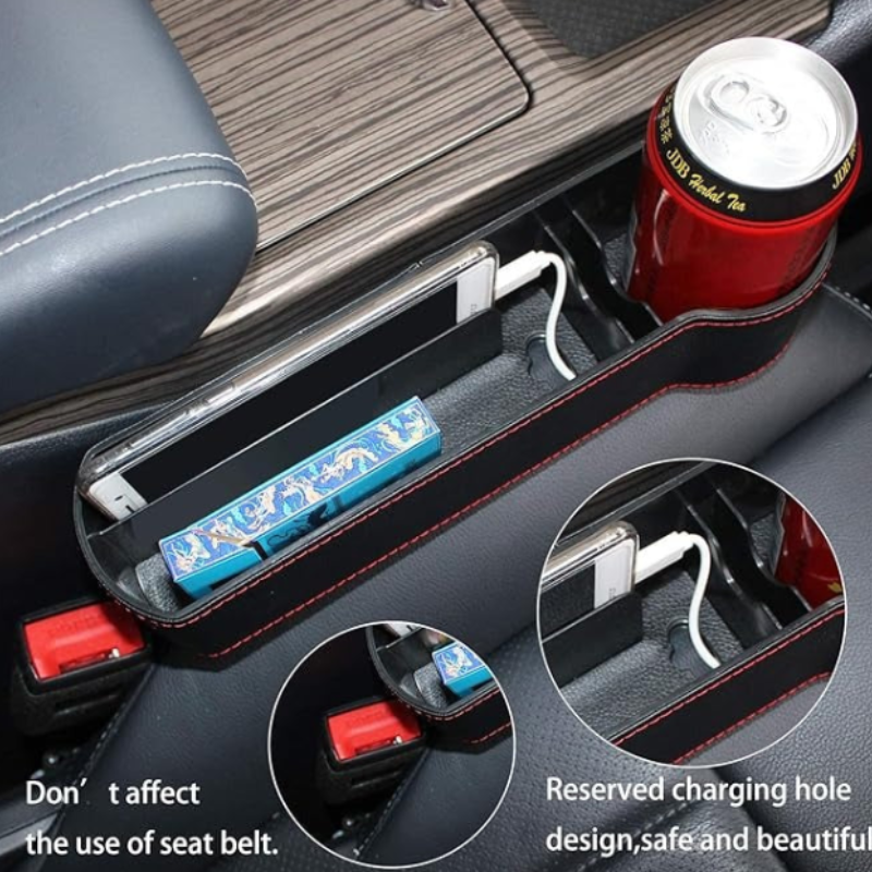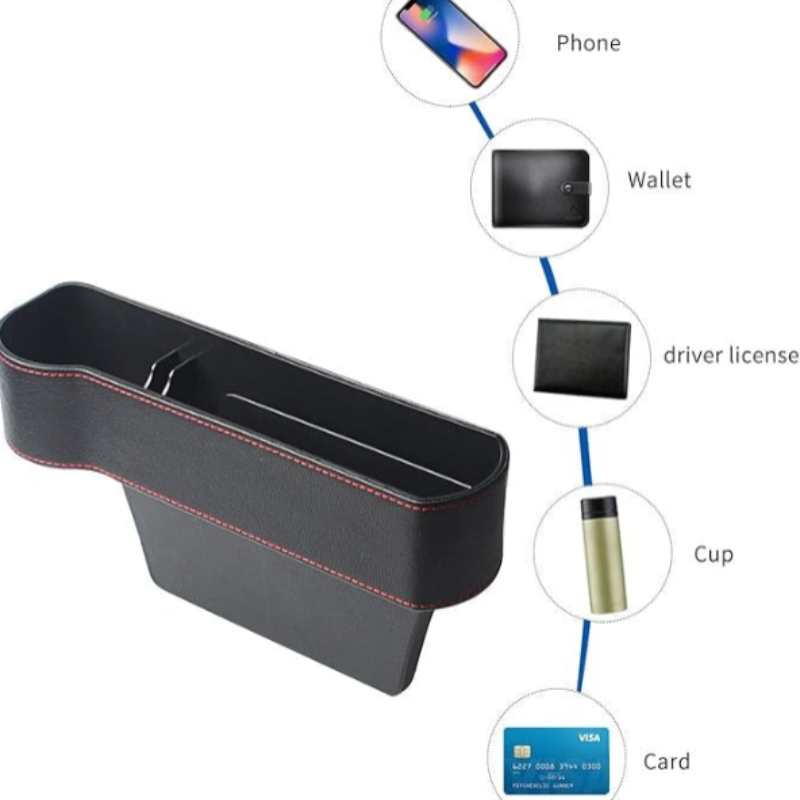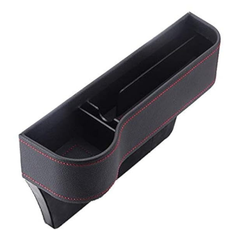 Multifunction Car Seat Organizer – Gap Filler Storage Box with Red Stitching