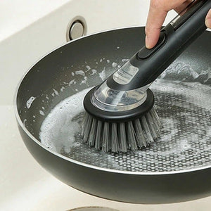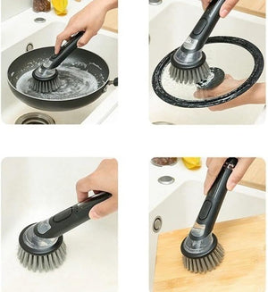 - Dishwashing: Fill the brush with liquid soap, then use it to scrub dishes, pots, and pans. The built-in dispenser ensures a consistent flow of soap, making cleaning faster and more efficient.