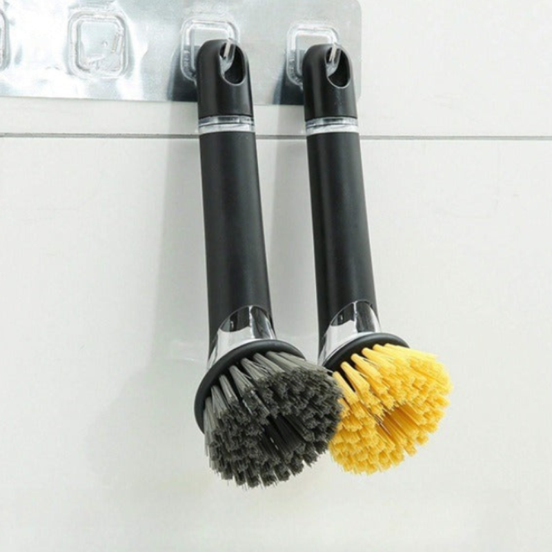 Introducing the Multifunctional Liquid Soap Dispenser Brush, a versatile tool designed to simplify your cleaning tasks in the kitchen and beyond. This innovative brush combines a built-in liquid soap dispenser with a durable scrubbing brush, offering a convenient all-in-one solution for washing dishes, pans, and other kitchenware. Effortlessly dispense soap with each brush stroke for a thorough and efficient clean.
