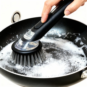 Dishwashing: Fill the brush with liquid soap, then use it to scrub dishes, pots, and pans. The built-in dispenser ensures a consistent flow of soap, making cleaning faster and more efficient.