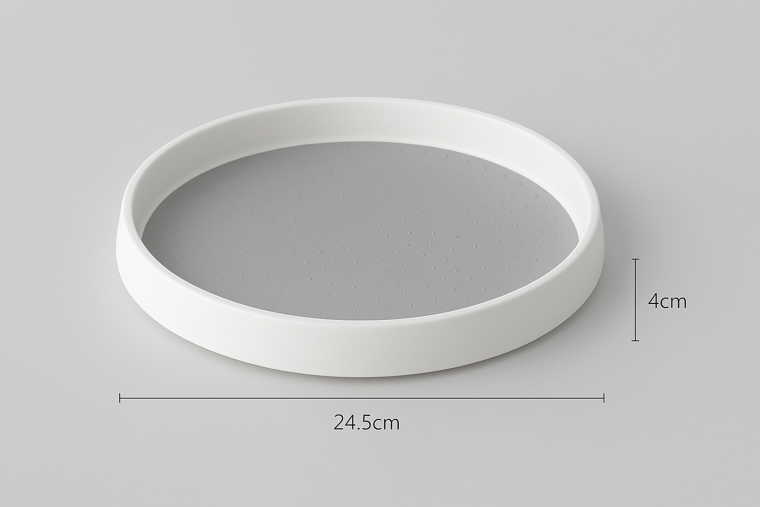 Raised edge protection: Prevents items from falling while rotating smoothly.