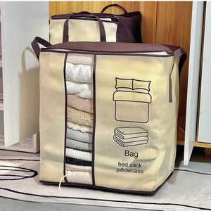 Non-Woven Quilt Clothes Organizer, Storage Organizer for Quilts and Blankets, Breathable Clothes and Linen Organizer, Foldable Non-Woven Storage Bag, Quilt and Blanket Storage Solution, Clothes Organizer with Clear Viewing Window, Versatile Storage for Sheets and Sarees, Durable Non-Woven Fabric Storage Organizer