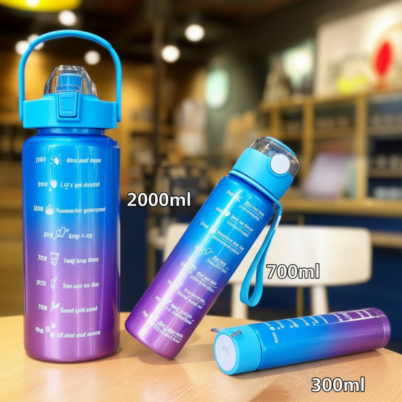 Paint Gradient 3-Piece Plastic Bottles – Colorful BPA-Free- – Gym, Office & Daily Use, Multi-Color Sipper with Water Reminder