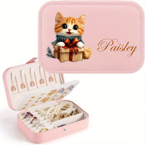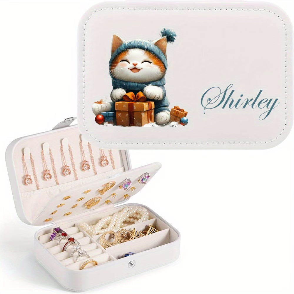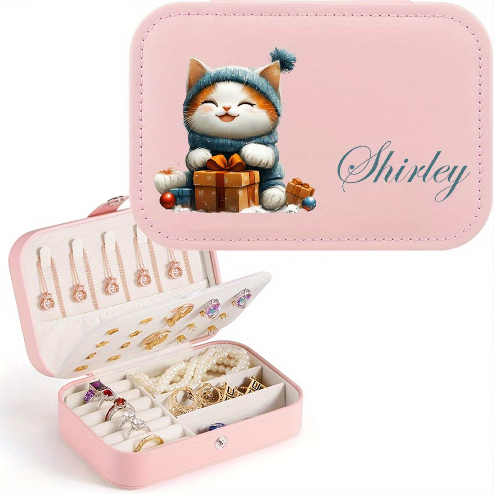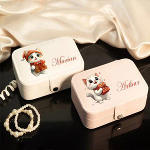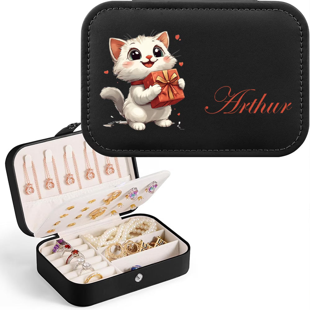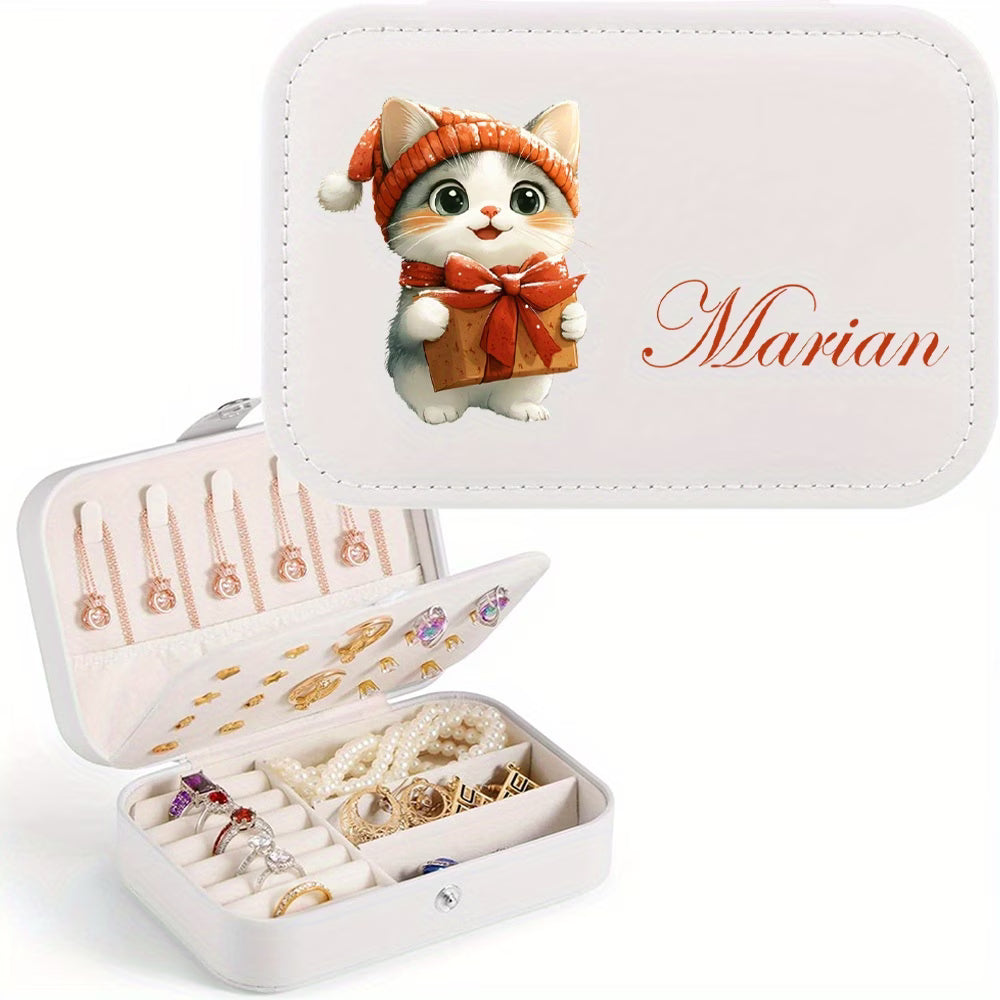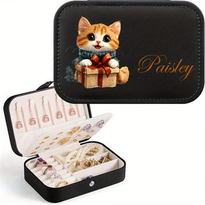 Personalized Faux Leather Jewelry Box with Cute Kitten Design ā Custom Name Travel Jewelry Organizer for Girls